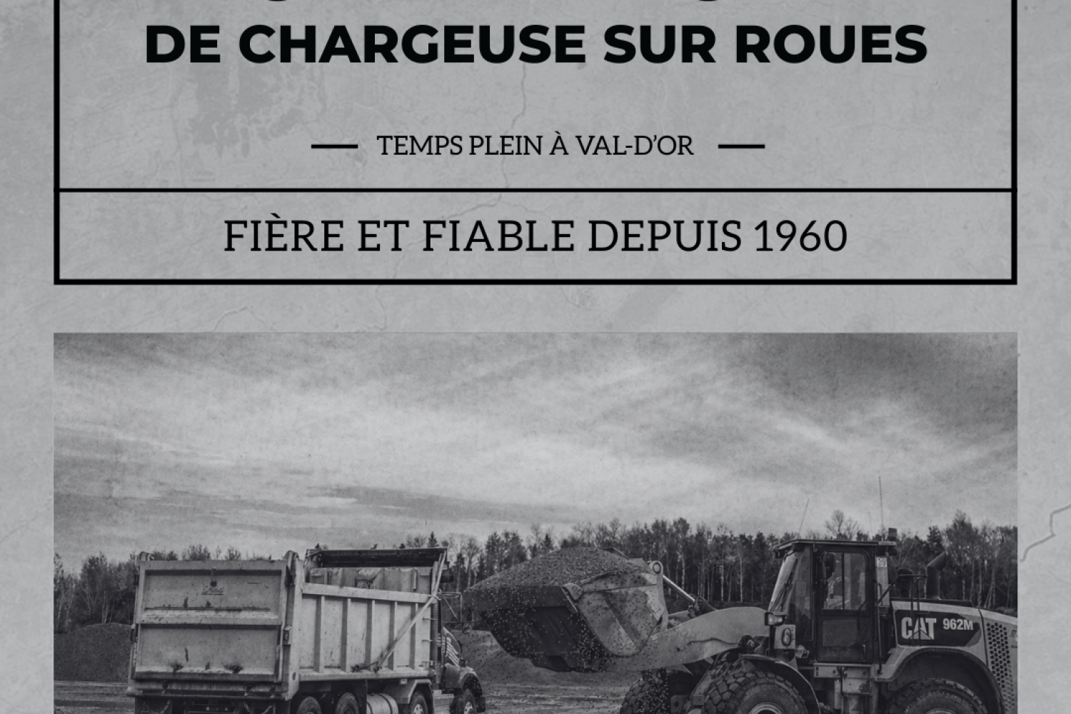 - Expérience en opération de loader ou équipement lourd (atout)